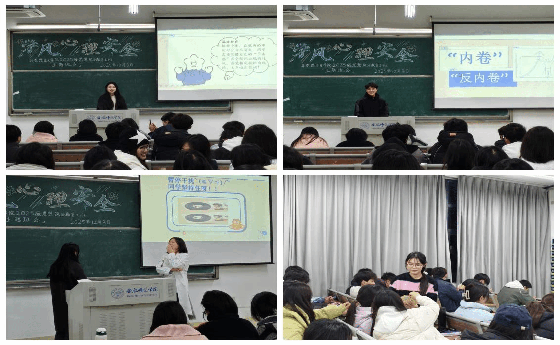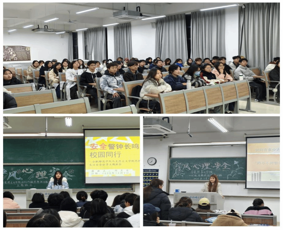 为进一步夯实学风建设根基,增强学生安全防范意识,促进心理健康成长,12月3日至9日,马克思主义学院分别在锦绣校区、滨湖校区同步开展“学风提质·安全筑基·心理赋能”主题班会。