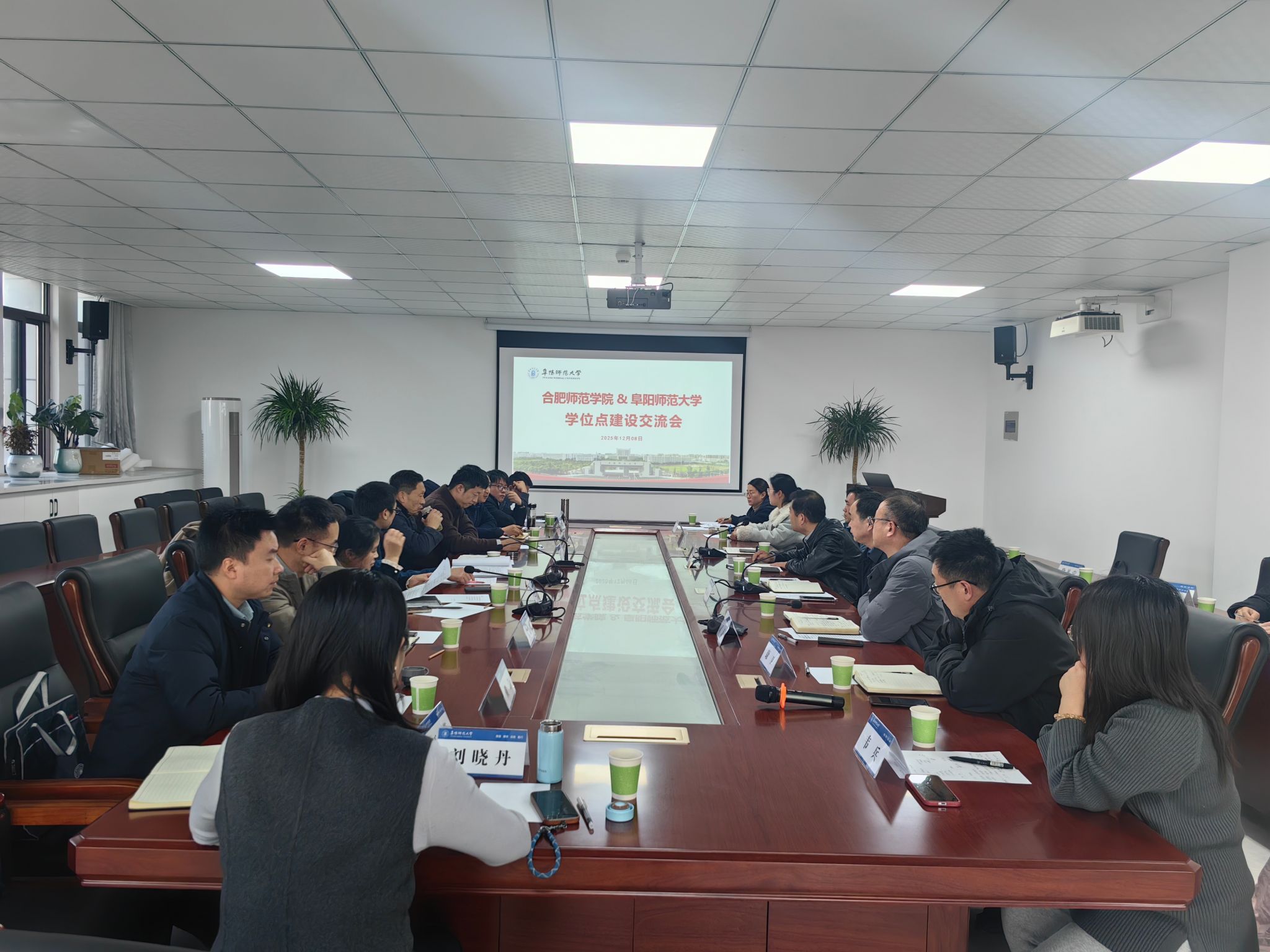 交流会上,董华泽简要介绍了学校硕士点建设情况和此次调研的目的,并对阜阳师范大学研究生处的热情接待表示感谢。阜阳师范大学研究生处处长闫成俭对董华泽一行表示热烈欢迎,简要介绍了学校发展情况、学科和学位点建设与评估历程等情况。