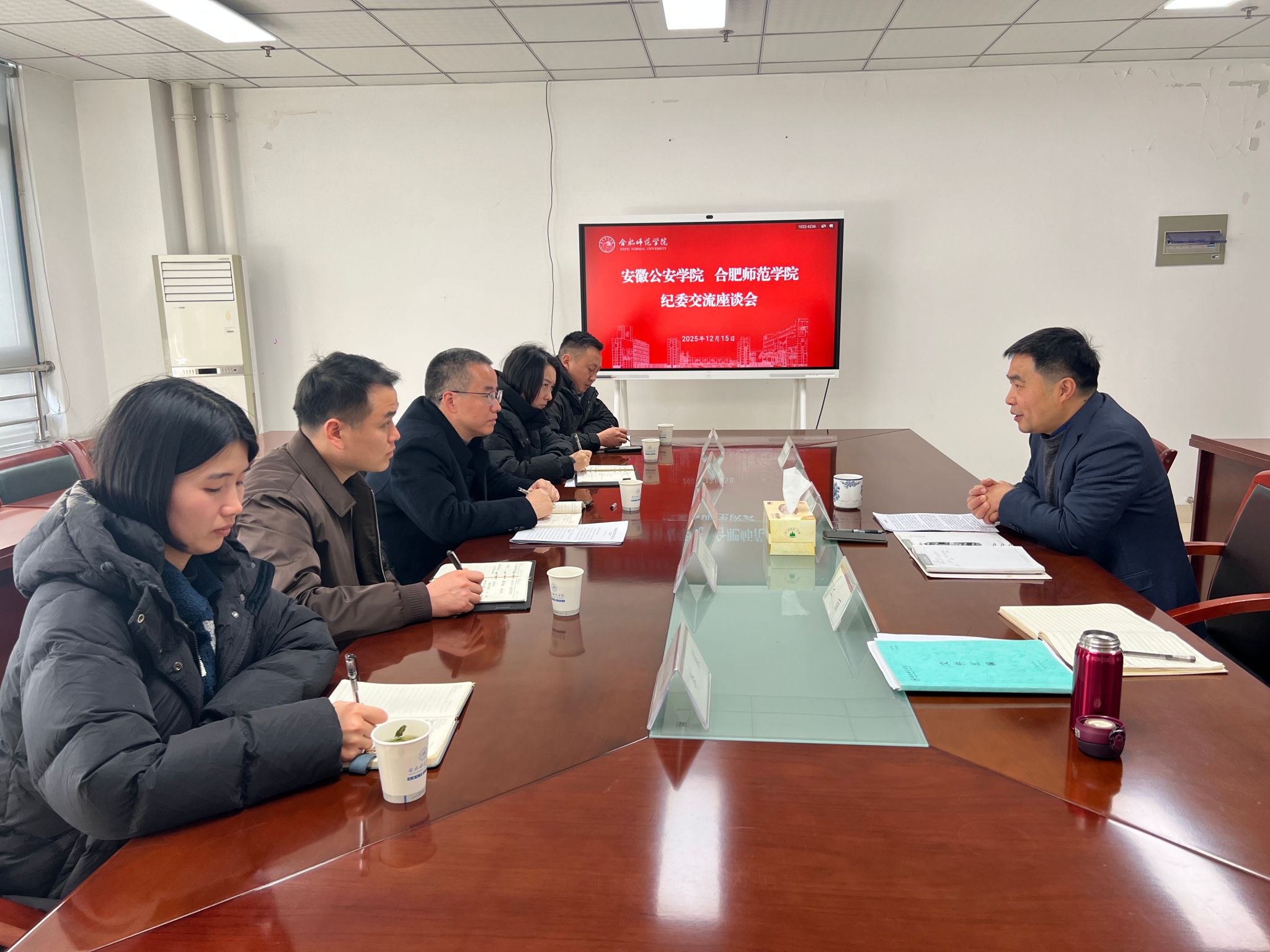 张智介绍了安徽公安学院近年发展与建设情况,对学校纪委分享交流表示感谢。双方表示,两校位于黄麓的新建校区门对着门,是搬不走的邻居,更有条件进一步加强纪检监察业务交流,推动工作水平共同进步。