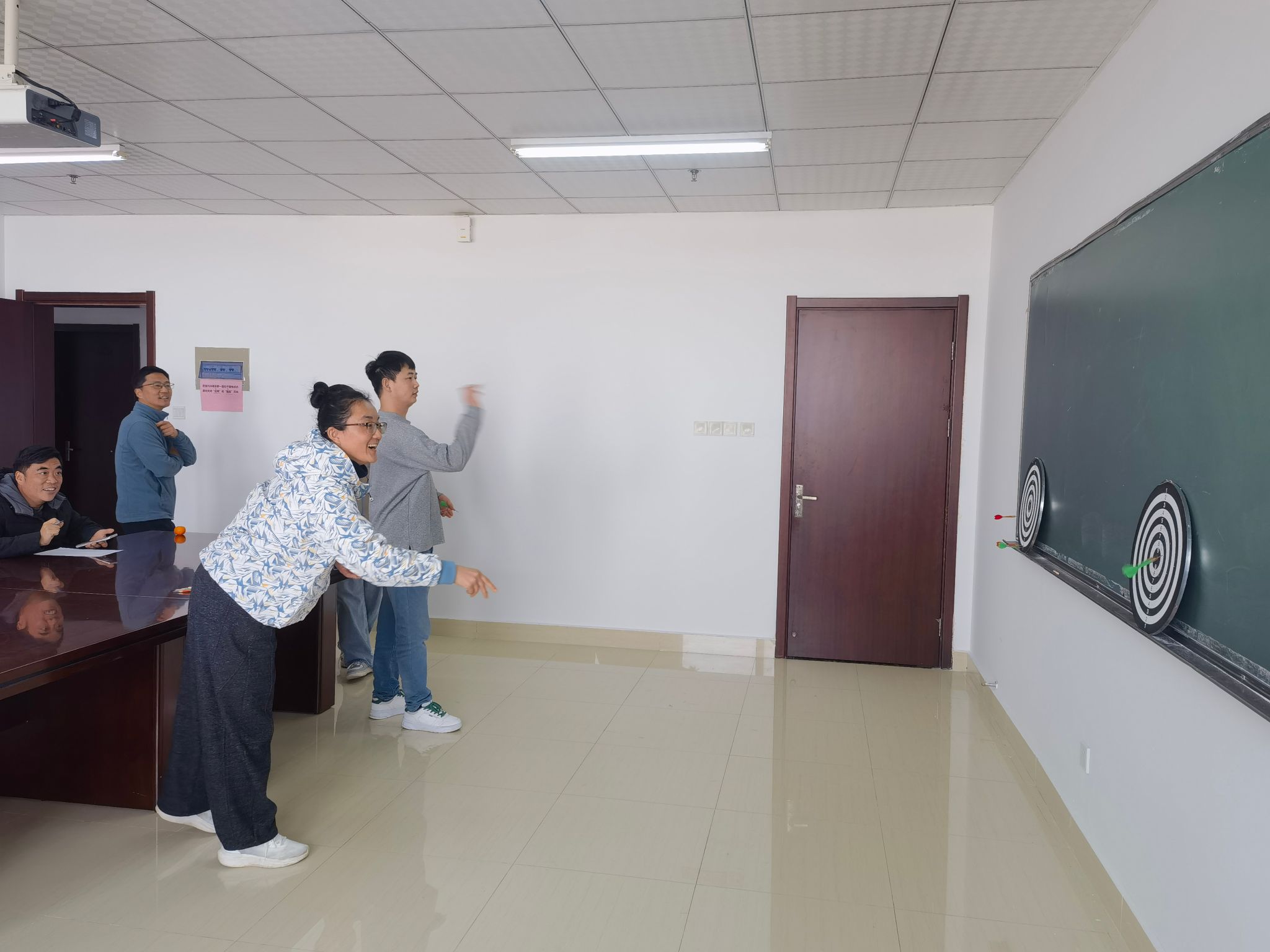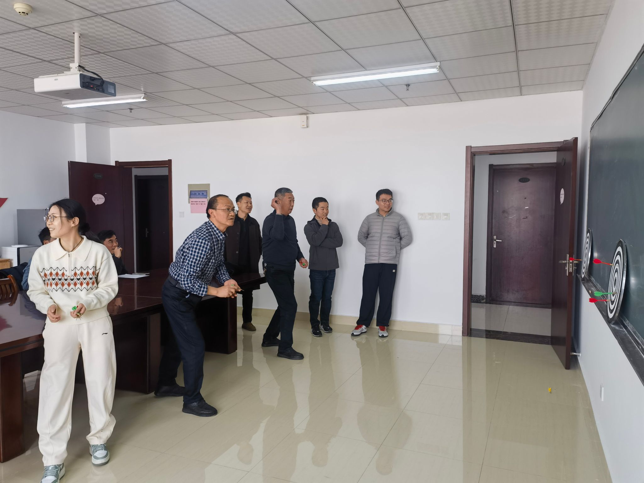 12月17日下午,为丰富教职工的业余文化生活,缓解工作压力,增进教职工之间的交流,数学与统计学院分工会在行知楼1108开展了“趣味投飞镖”活动。学院全体教职工积极参与,在轻松愉快的氛围中享受运动乐趣。