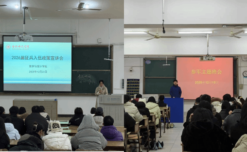为激发毕业生投身国防、报效祖国的热情,积极响应国家“科技强军,人才强军”战略部署,数学与统计学院通过多层次、多形式开展政策宣讲系列活动,扎实推进2026届征兵工作。