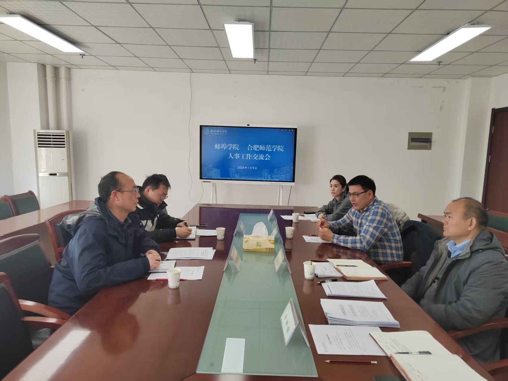 1月9日,蚌埠学院人事处处长邬旭东一行来beat365就人事人才相关工作进行调研交流。学院党委委员、副校长周端明出席并主持交流会,人事处处长吴长龙、副处长胡婷婷和相关工作人员参加会议。