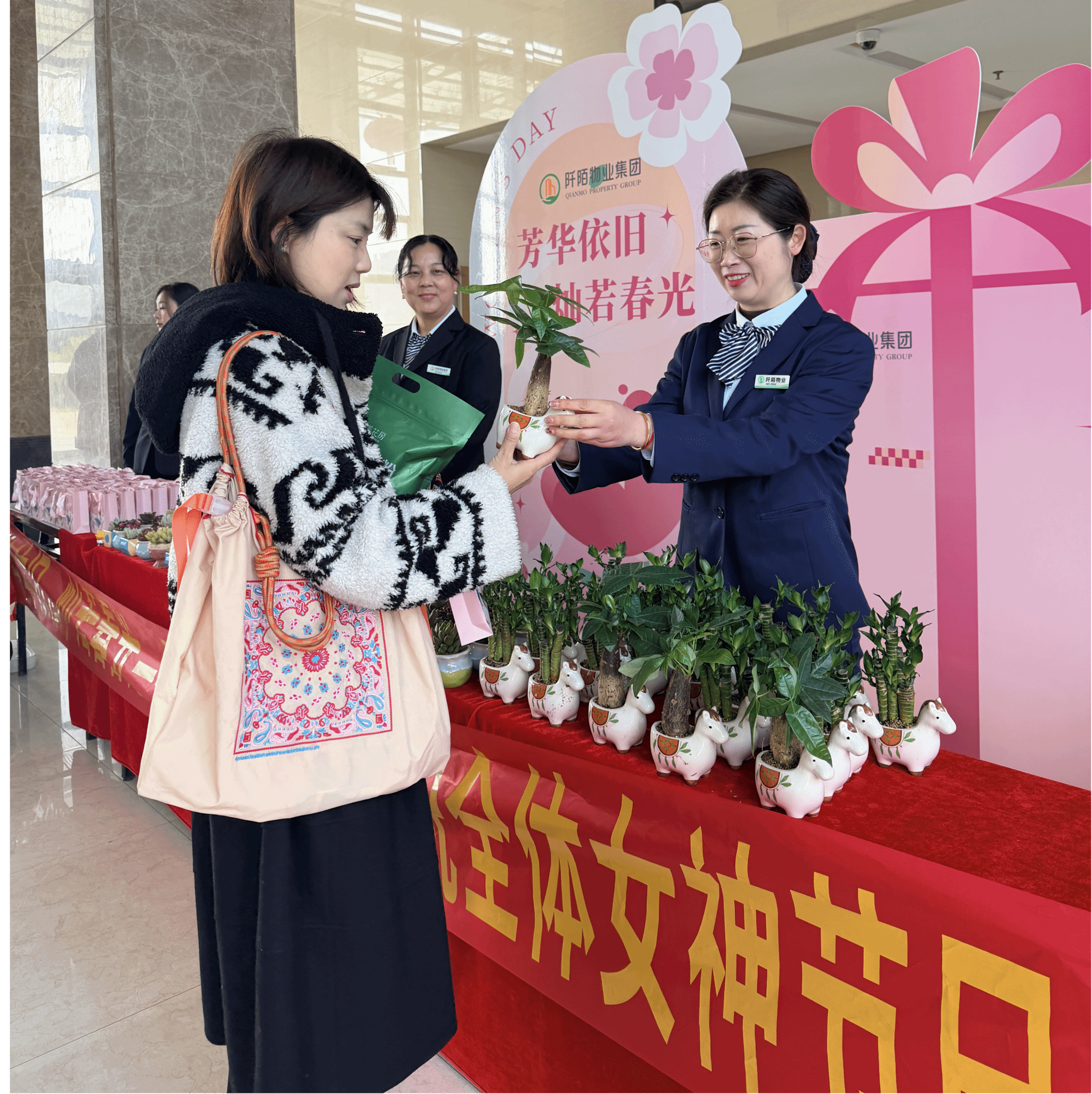 “你们的服务太贴心了,每年都给我们惊喜!”一位走进大厅的老师接过物业工作人员递来的绿植,脸上洋溢着惊喜的笑容,活动现场氛围温馨而热烈。