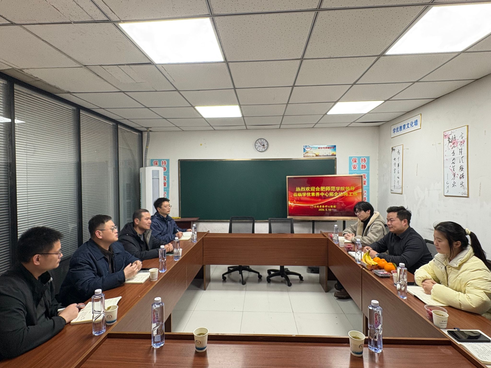 3月10日下午,化学与制药工程学院党委书记刁文彬、教育与心理科学学院党委副书记陈帅帅及相关系主任、毕业班辅导员一行,前往合肥学优素养中心开展访企拓岗活动,并看望在该中心就业的学校校友。公司法人张国兆与相关教师参加座谈交流。