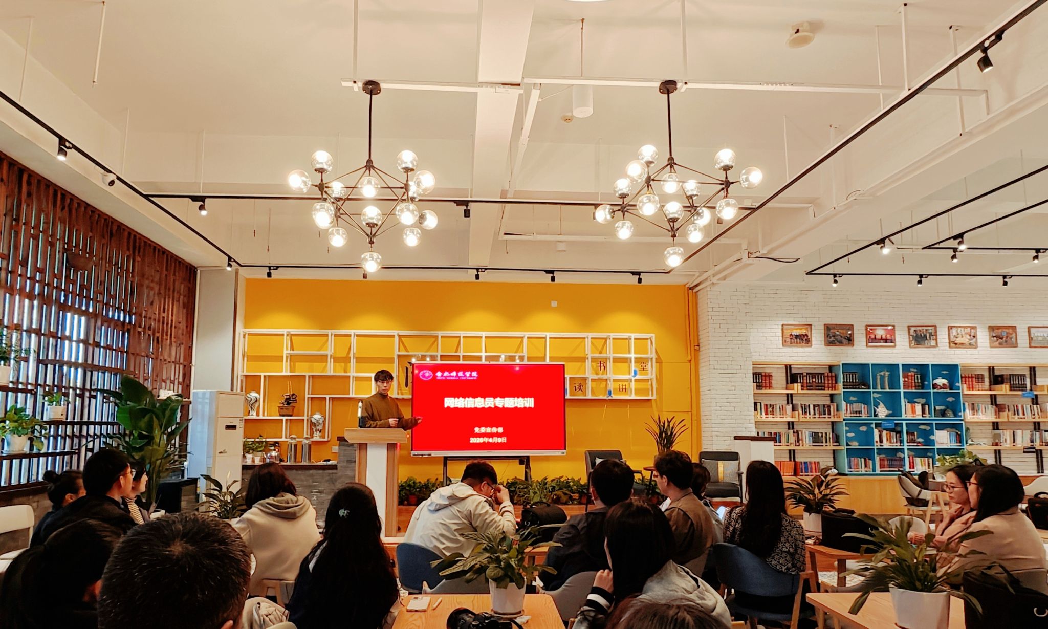 4月9日下午,由宣传部主办的网络信息员新闻摄影专题培训在锦绣校区图书馆二楼“阅+历”读书讲堂开展,各单位网络信息参加培训,美术与设计学院教师杨立群担任主讲。