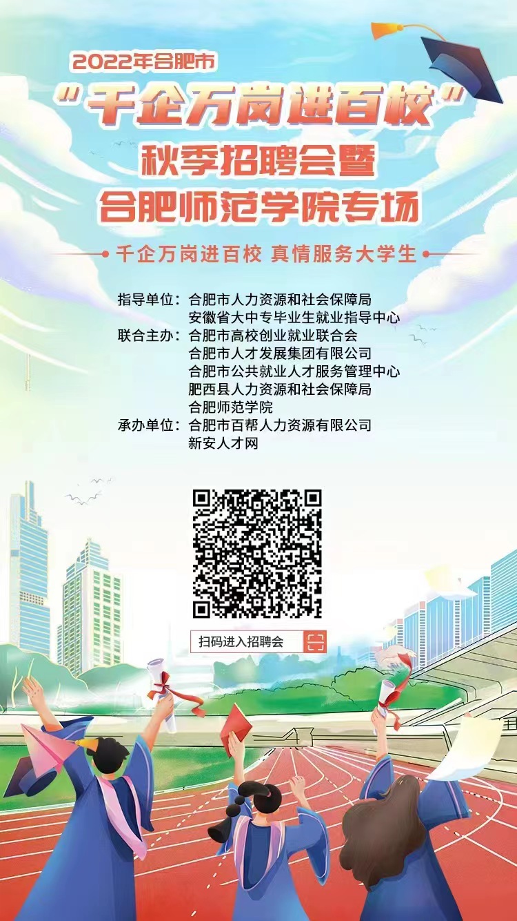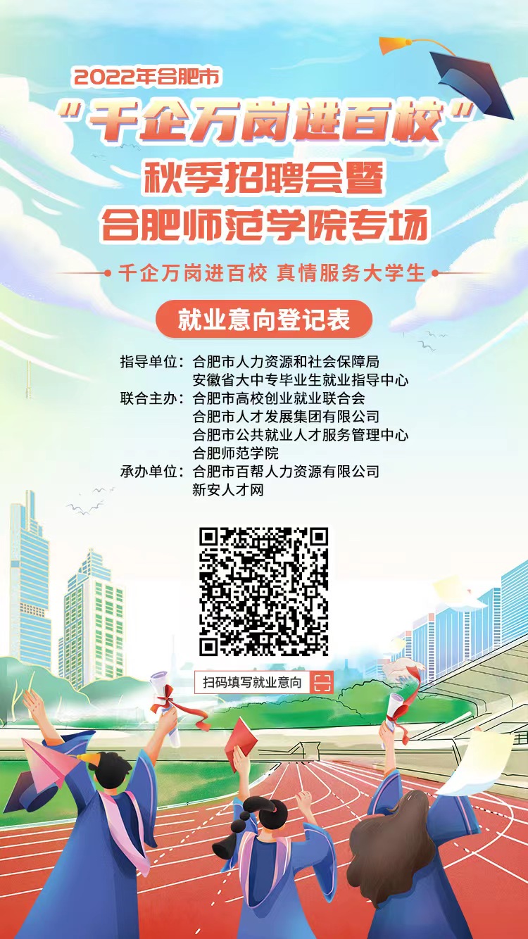受疫情等影响,原定于线下举办的2022年合肥市“千企万岗进百校”暨beat365唯一官方网站专场招聘会调整为线上举办,线上招聘会时间从即日起持续至2023年春季,欢迎毕业生下载附件查看岗位信息,扫描以下二维码在线参加招聘会并填写求职意向。