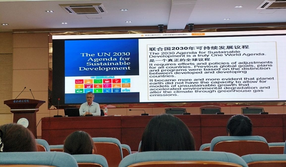 Berthold Kuhn教授结合国际合作理论与实践,围绕可持续发展政策对比、全球语境中的中国、“国家——市场——公民社会”三维合作、气候保护政策与治理、项目管理监控与评估等方面展开,Berthold Kuhn教授还向同学们介绍了国际合作语境下的可持续发展目标和任务,该目标和任务具有全球化价值,代表着全球议程的演变。最后,他还给同学们普及了具有国际区域影响力的可持续发展组织以及具有全球意义的发展理念。