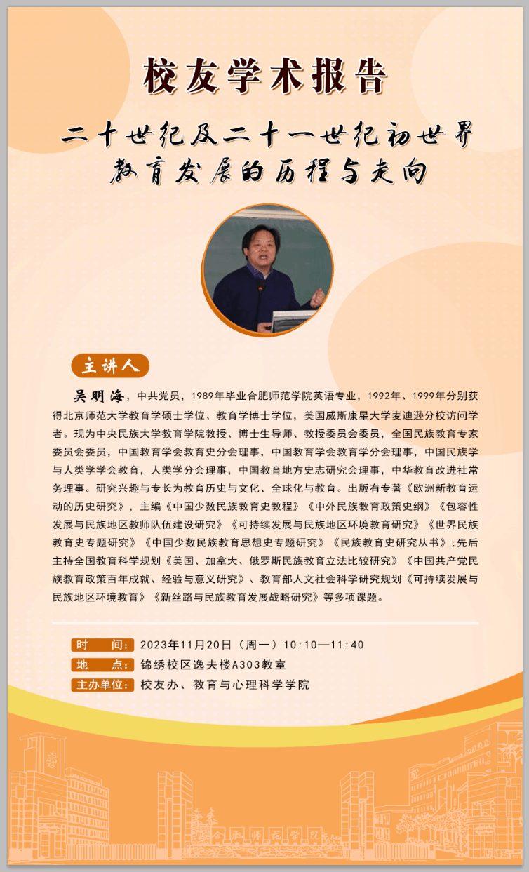 主讲人:吴明海校友 中央民族大学教授 、博士生导师