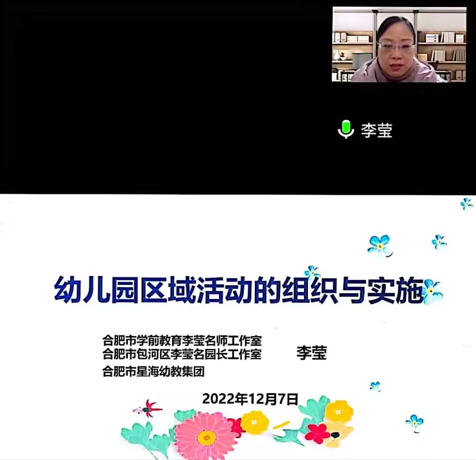 讲座中,李莹围绕着区域的空间布局、区域活动的分类、区域活动的材料投放、区域活动的组织和区域活动的实施等五个方面展开。她指出:幼儿园区域游戏的组织十分重要,它对于激发幼儿的求知欲、好奇心,促进幼儿全方面发展起着支撑作用。