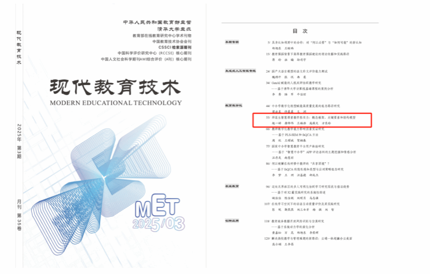 近日,我院教育与心理科学学院教师赵一婷在智慧课堂教学胜任力领域取得新进展,研究针对生成式人工智能技术给教育教学带来的巨大冲击,结合师范生尚未常态化接触智慧课堂导致其教学胜任力难以得到培养和提升的实际情况,尝试探究师范生智慧课堂教学胜任力。相关成果发表在教育学高水平CSSCI来源刊《现代教育技术》(2025年第3期,主办单位:清华大学,影响因子:4.838),论文题目为“师范生智慧课堂教学胜任力:概念框架、关键要素和结构模型”。