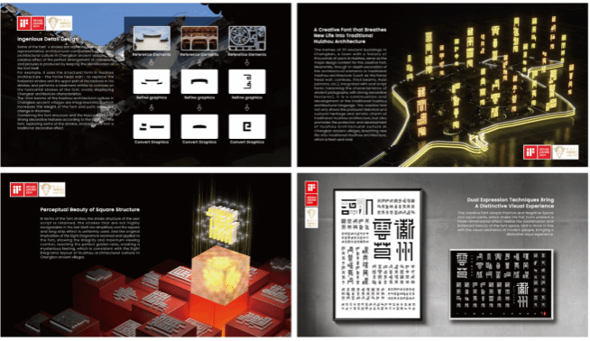 IF设计奖与红点奖和IDEA奖并称为世界三大设计奖;缪斯设计奖是全球设计领域颇具影响力的奖项之一,素有“设计界奥斯卡”之称,在设计师圈层影响力极大。《呈坎云篆》设计作品获得该奖项,不仅是对创作者设计水平和创新能力的肯定,也是对中国传统文化和现代设计融合发展的认可(美术与设计学院)