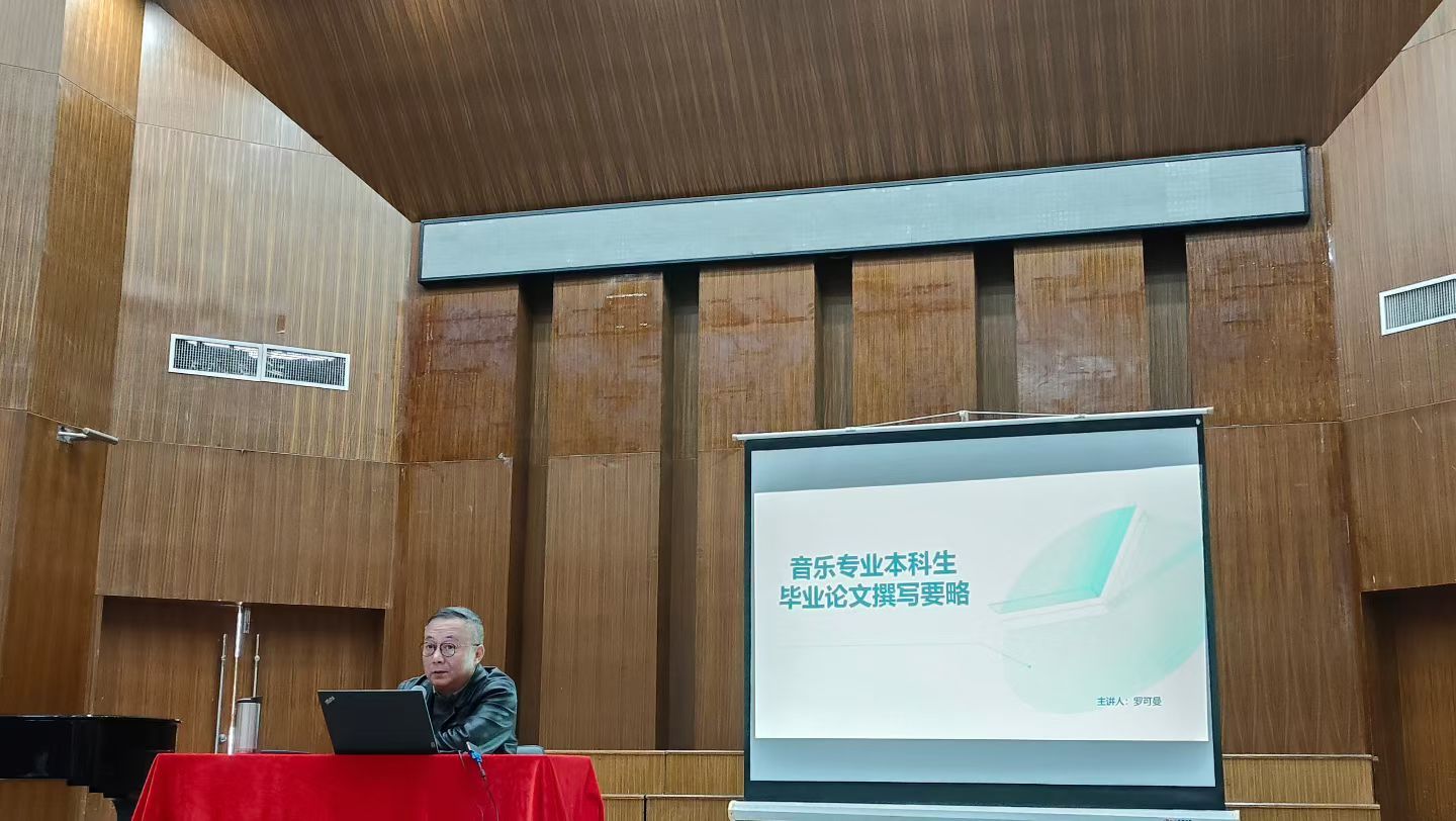 11月12日下午,beat365唯一官方网站音乐学院原院长、安徽艺术学院特聘教授罗可曼在音乐厅带来了一场题为《音乐专业本科生毕业论文撰写策略》的主题讲座。音乐学院教师及学生出席了本次讲座。