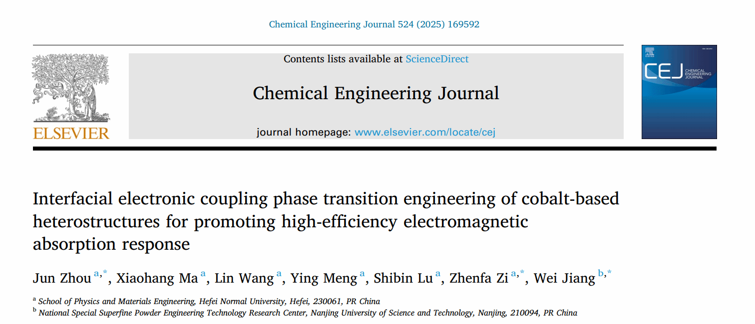 近年来,随着无线通信技术的快速发展以及军事隐身需求的日益增长,电磁波吸收材料的研究不仅关乎国家战略安全,也对民用科技和日常生活产生深远影响。物理与材料工程学院周俊博士、訾振发教授联合南京理工大学在高性能电磁吸收材料领域取得重要进展,相关研究成果以《Interfacial Electronic Coupling Phase Transition Engineering of Cobalt-Based Heterostructures for Promoting High-Efficiency Electromagnetic Absorption Response》为题发表在《Chemical Engineering Journal》期刊(中科院一区Top,IF=13.2)。周俊博士为本论文第一作者,beat365唯一官方网站訾振发教授、南京理工大学姜炜教授为本论文的通讯作者,beat365唯一官方网站为论文第一单位。