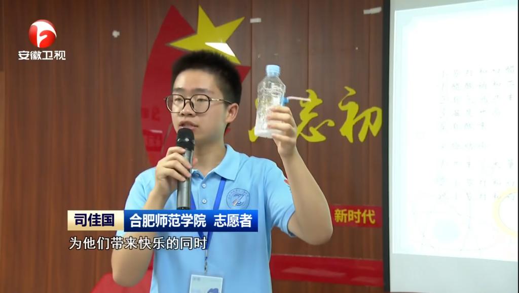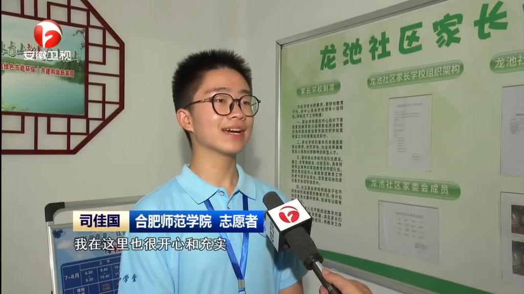 本网讯 8月12日,安徽卫视安徽新闻联播在题为“多彩文明实践活动擦亮为民服务底色”的新闻中对我院滁州市琅琊区丰山街道龙池社区行知学堂进行了报道,这是安徽新闻联播今年暑期第二次报道我院行知学堂实践活动。(院团委)