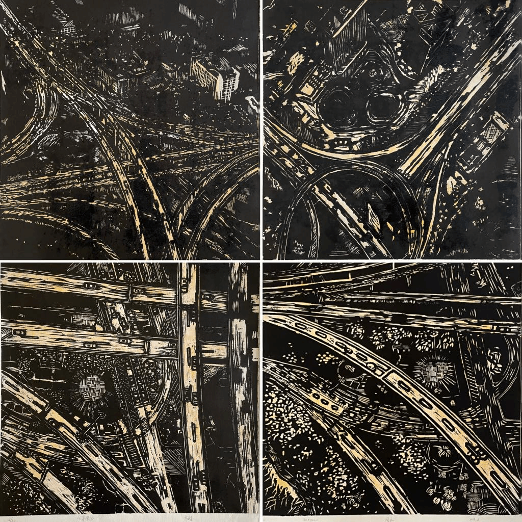 2019级美术学师范专业 周汪 版画作品《五里墩立交桥》 指导教师 郭益