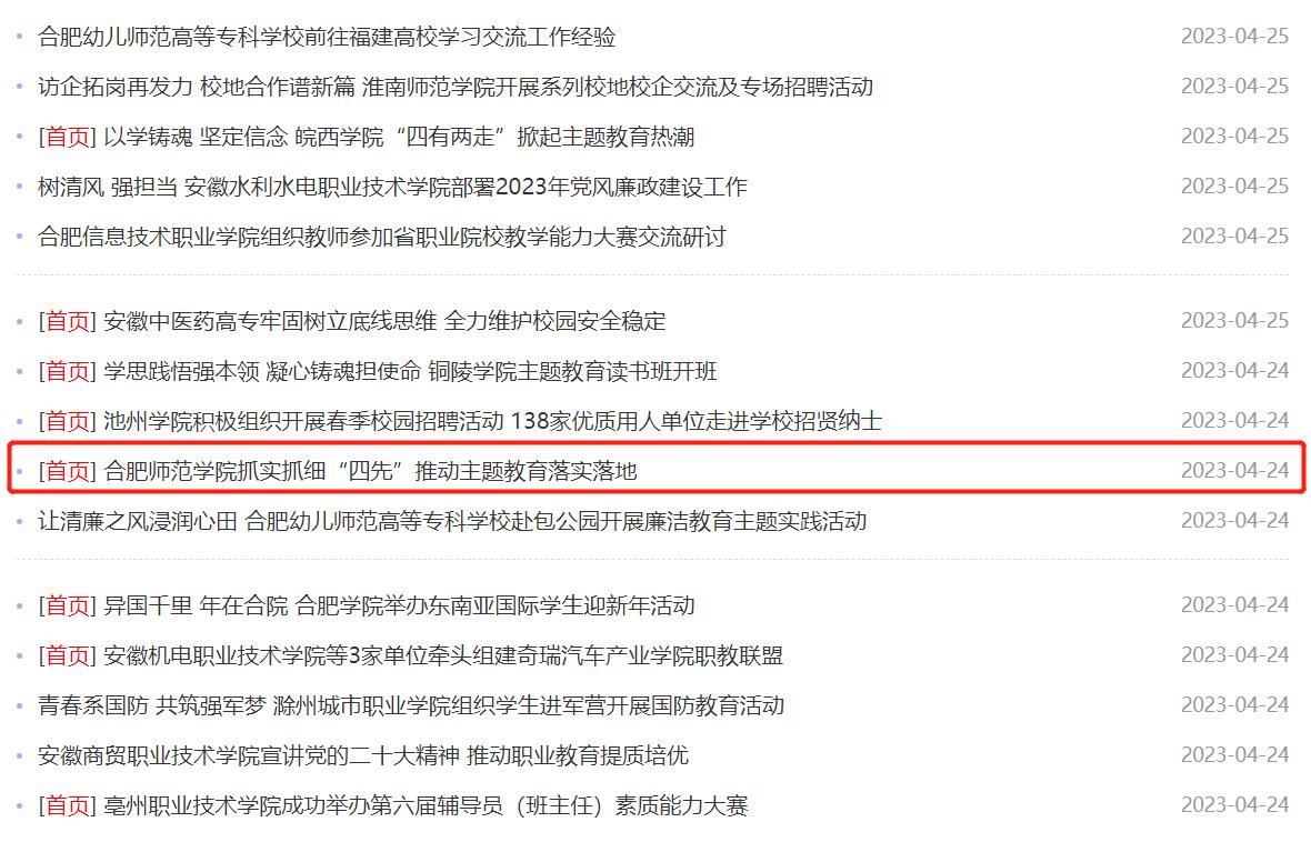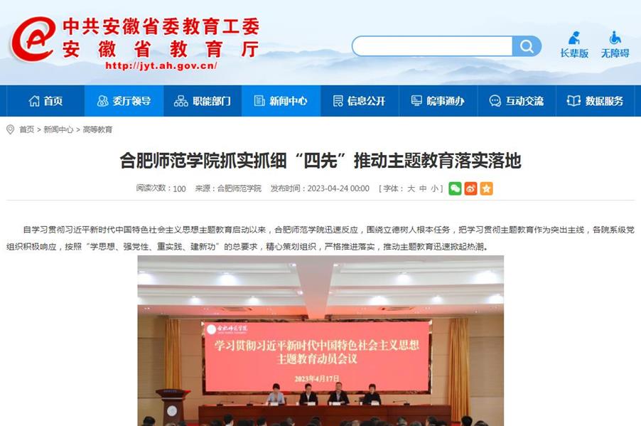 4月26日,安徽教育网首页以《beat365唯一官方网站抓实抓细“四先”推动主题教育落实落地》为标题,对此进行了报道。