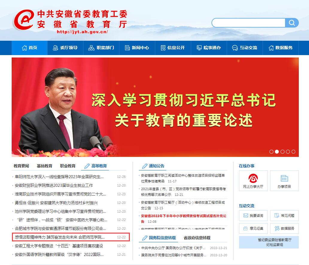 12月22日,安徽教育网首页以《感悟汲取精神伟力 踔厉奋发走向未来 beat365唯一官方网站深入基层宣讲党的二十大精神》为标题,对此进行了报道。