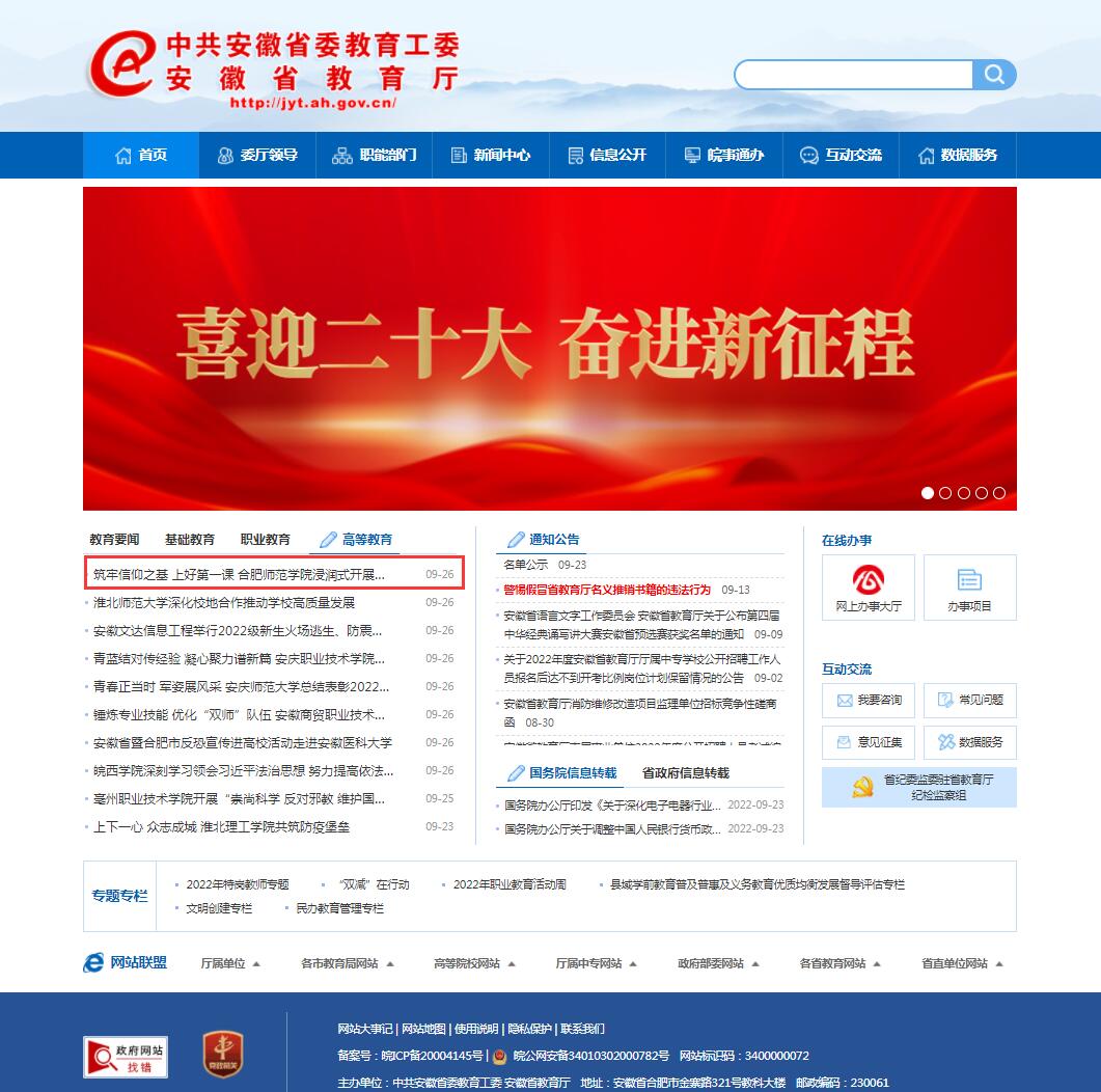 9月26日,安徽教育网首页以《筑牢信仰之基 上好第一课 beat365唯一官方网站浸润式开展入党启蒙教育》进行了报道。