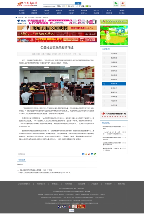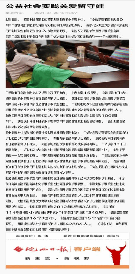 7月20日,皖西日报社客户端“掌上六安”、六安新闻网对此进行了报道。(外国语学院:张婷婷、朱儒进)