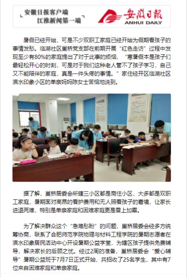 7月8日,安徽日报对此进行了报道。