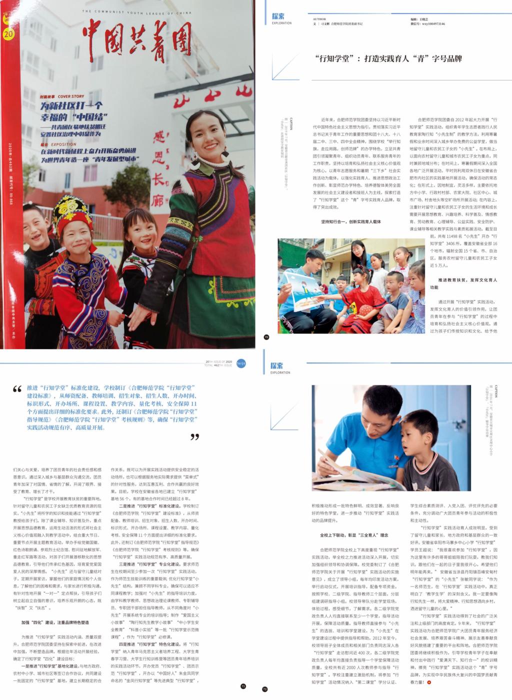 本网讯 由共青团中央主办的《中国共青团》杂志在2020年第20期的“探索”栏目以《“行知学堂”:打造实践育人“青”字号品牌》为题,用较大篇幅对我院“行知学堂”实践活动进行了全面报道和大力推介。这是《中国共青团》杂志首次对我院进行报道,实现了国家级媒体期刊宣传报道学院工作又一新的突破,进一步扩大了学院办学育人成效的社会影响力,进一步凸显了学院“行知学堂”实践活动的品牌效应。(校团委)