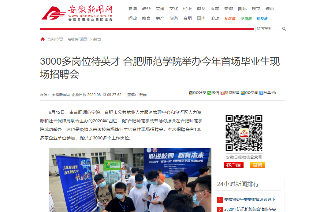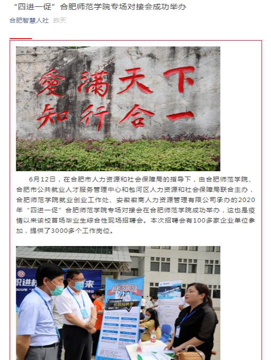 安徽新闻网、新浪网、合肥市人社局官方微信等对此进行了专题报道。(就业创业工作处)