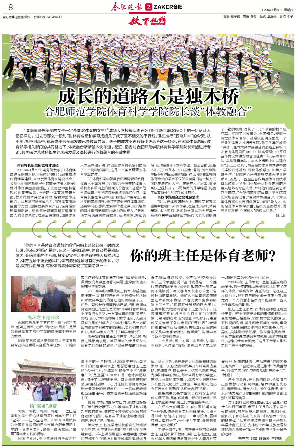 1月9日,《合肥晚报》“教育视线”专版以《成长的道路不是独木桥》对相关内容进行了专题报道。(新闻中心)
