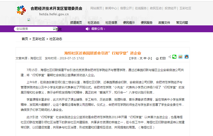 新闻链接:http://htgl.hefei.gov.cn/pub/hfjkq/wcsq/sqdt/201907/t20190715_2836982.html