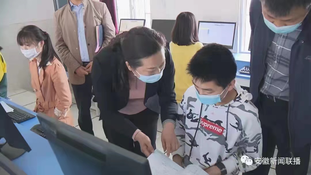(2020年5月,杨善竑在合肥市长丰县义井镇中学调研教育信息技术课程开始情况)
