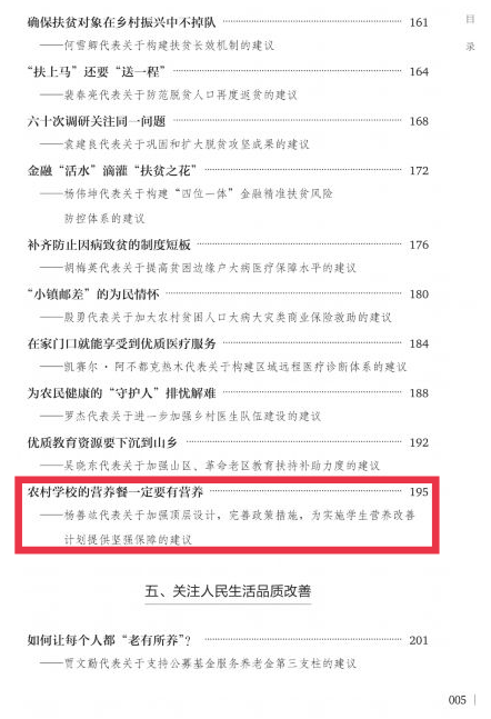 民有所呼,我有所应,当好人民的参谋员。几年前“入园难、入园贵”一直是老百姓和社会上反映比较强烈的问题,这是学前教育发展的短板和困惑。十三届全国人大一次会议期间,杨善竑联名安徽代表团提交学前教育法立法的议案,呼吁国家以立法的形式来解决学前教育发展中的问题,保障老百姓能够依法享受到普惠优质的学前教育。而如今,司法部已完成对这部草案的征求意见,本届全国人大常委会即将将此草案纳入审议程序。此外,为了落实保障农村孩子的膳食营养,对欠发达地区学生实施营养改善计划,杨善竑在不断地调研过程中,梳理出4条建议,得到了教育部高度重视,并将其列为部长推荐的重点建议,一一作了答复,2021年9月财政部与教育部联合下文,决定从2021年秋季学期起农村义务教育学生营养膳食补助国家基础标准由每生每天4元提高至5元。