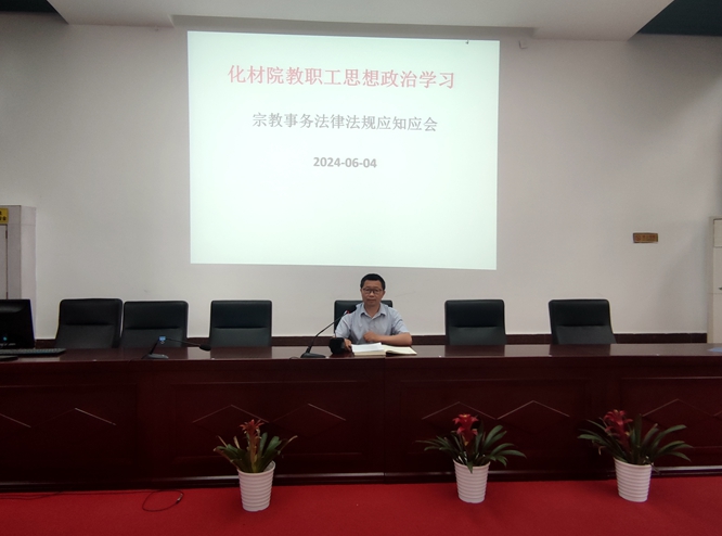 学习会上,院党委书记刘庆言组织全体教职工一起认真学习了“宗教事务法律法规应知应会”,逐条传达了学校党委统战部下发的36条宗教事务法律法规具体内容。