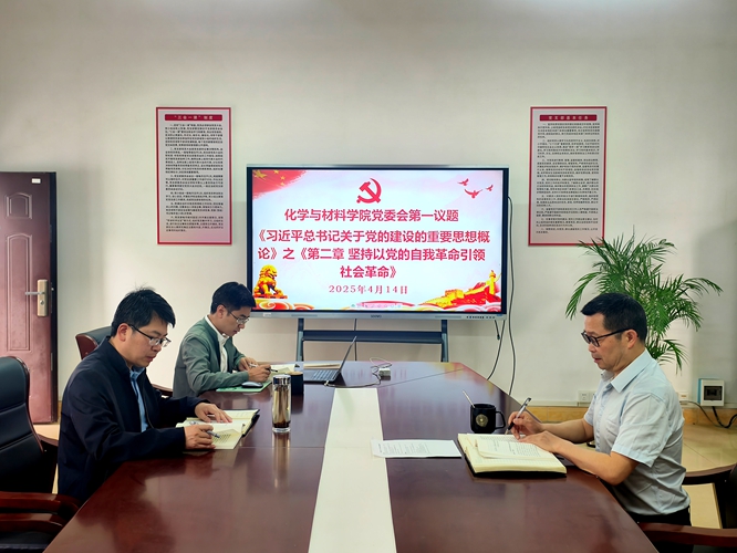 会议强调,化材院党委要努力发扬彻底的革命精神,进一步完善党的自我革命的思路举措,并且一以贯之进行下去。全体师生要提高政治站位,深刻认识党的自我革命重大意义,严格要求自己,始终保持党同人民群众的血肉联系,永葆党的先进性和纯洁性。