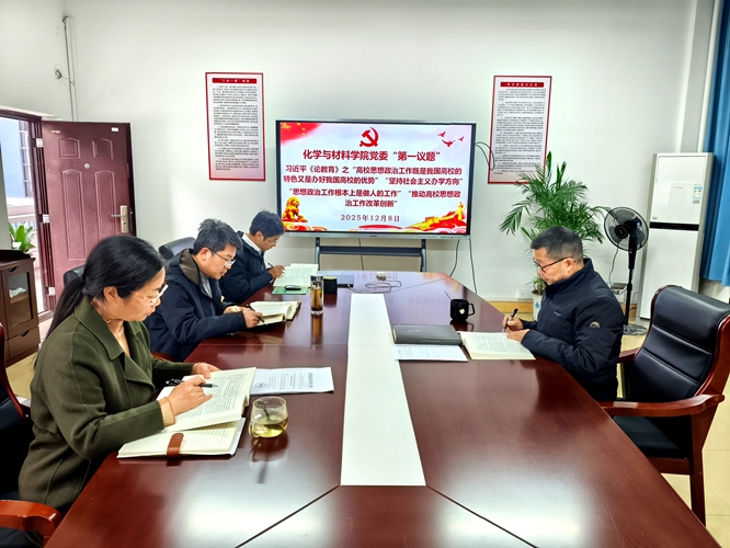 2025年12月8日16:00,学院召开党委会,集中开展理论学习。党委领导班子成员参会,九三学社社员、副院长龚霞,学生党总支书记彭玉萌列席会议,会议由学院党委书记刘庆言主持。
