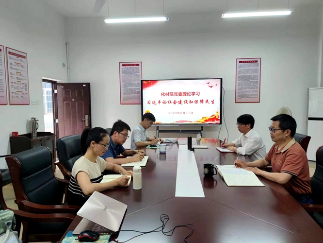 刘庆言作会议总结强调:一是我党自新民主主义革命时期起就致力于人民解放事业,并为此进行了艰苦卓绝的革命战争。新中国成立后,我党带领全国人民积极进行社会改革和社会主义建设事业,有力推进了社会建设和民生事业的发展。改革开放后,在开展经济建设的同时积极探索并大力推进了社会建设和保障民生事业,从而实现了社会安定和人民幸福的美好局面,极大地提升了人民安全感、获得感和幸福感。二是新时代要坚持以习近平新时代中国特色社会主义思想为指导,统筹并发展好中国特色社会主义建设和民生保障事业,切实提升人民的获得感、安全感和幸福感,切实提升人民满意度,进一步推进中国式现代化和中华民族伟大复兴。三是化材院要落实好上级有关社会建设和保障民生的精神,努力加强并积极推进社会建设和保障民生,关心师生生活、切实为师生办实事办好事,为学院和谐发展与高质量发展打好基础,不断提升师生幸福感。