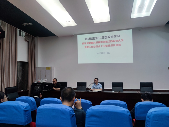2023年4月18日15:40,学院在致学楼大会议室召开学院教职工大会,开展了4月份政治学习。院党委书记刘庆言传达了省委第九巡视组巡视江西农业大学党委工作动员会上王金林组长的讲话精神及江西农业大学党委书记黄路生同志在巡视工作动员会上的表态发言内容。