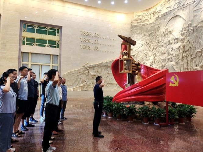 在萍乡安源路矿工人运动纪念馆,全体党员向毛主席石像敬献了花篮并重温了入党誓词,在讲解员的带领下,一同学习了老一辈无产阶级革命家领导安源路矿工人,率领劳苦大众进行武装斗争奋斗的历史。