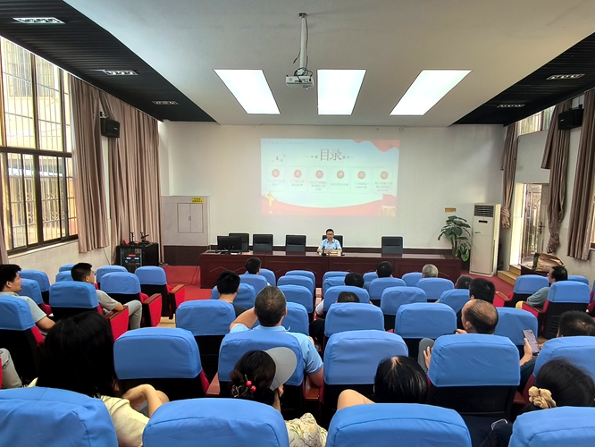 在热烈庆祝中国共产党成立104周年的特殊时刻,在持续开展深入贯彻中央八项规定精神学习教育的重要关头,2025年7月1日下午,学院党委书记刘庆言为全体教职工党员讲授学习教育专题党课。