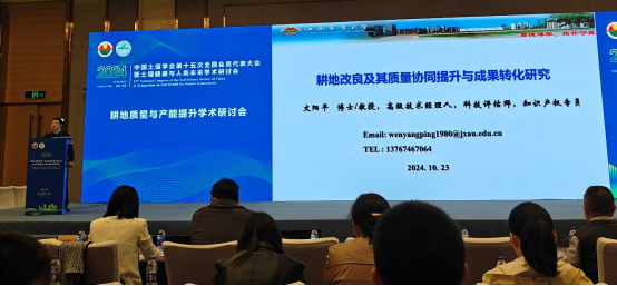 beat365文阳平教授,围绕《耕地改良及其质量协同提升与成果转化研究》为题,为与会者分享了一场精彩纷呈、见解独到的报告。报告中,不仅详尽阐述了其研究团队如何巧妙运用工农业及林业废弃物这一丰富而往往被忽视的资源,开展创新性的耕地改良与质量提升工作,还深入探讨了这些举措对于促进土壤生态平衡、提高农作物产量与品质的积极作用。同时在报告中特别强调科研成果与社会需求紧密结合的重要性,并分享了团队在探索将科研成果有效转化为实际应用路径上的宝贵经验,为全国范围内致力于科技成果转化的科研工作者搭建沟通的桥梁,共同探讨如何在国家政策引导和社会需求驱动下,更高效地将实验室里的研究成果转化为推动农业可持续发展的强大动力。会议结束后,文阳平教授的报告赢得了广泛赞誉。多位来自不同领域的专家对其在耕地改良领域的独到见解、对废弃物资源化利用的创新实践,以及在促进科研成果转化方面的积极探索表示了高度的认可与赞同。他们一致认为,文教授的工作不仅为解决当前耕地质量下降、资源循环利用等紧迫问题提供了新思路,也为我国农业科技发展树立了典范,激励着更多科研工作者投身于这一富有挑战与机遇的领域,共同为实现农业绿色转型贡献力量。