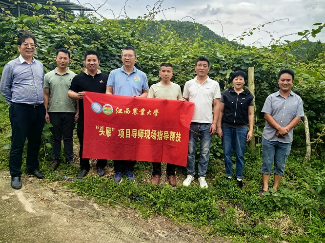 2024 年5月12日,应乐安县农业局邓勇股长和学员董登华的邀请,针对基地蜜橘和蜜梨种植土壤肥力下降、果子残渣多、叶片变黄以及病虫害等问题,化材院研究生支部黄喜根教授邀请农学院辜青青和林学院范国荣等教授到实地调研并取土样,辜青青和范国荣等教授指出明确修剪建议和管理注意方法,基地负责人董登华和邓股长对专家的服务非常满意。