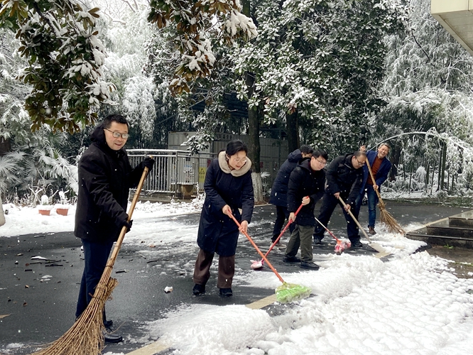 为全力保障师生平稳安全出行,2024年1月22日上午,学院组织党政领导、行政坐班人员及党员志愿者在学院办公楼、实验楼周边开展清扫积雪活动。学院学生党总支书记、本科生第一党支部党员彭玉萌,本科生第一党支部书记王艺霖参与本次活动。