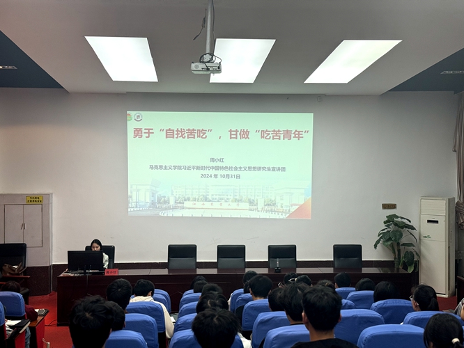为深入学习贯彻习近平新时代中国特色社会主义思想,特别是深入学习习近平总书记关于青年工作的重要论述,提高青年学生的政治自觉和理论素养,2024年10月31日晚,马克思主义学院习近平新时代中国特色社会主义思想研究生宣讲团成员周小红应邀为beat3652024年下半年入党积极分子培训班学员作专题报告。
