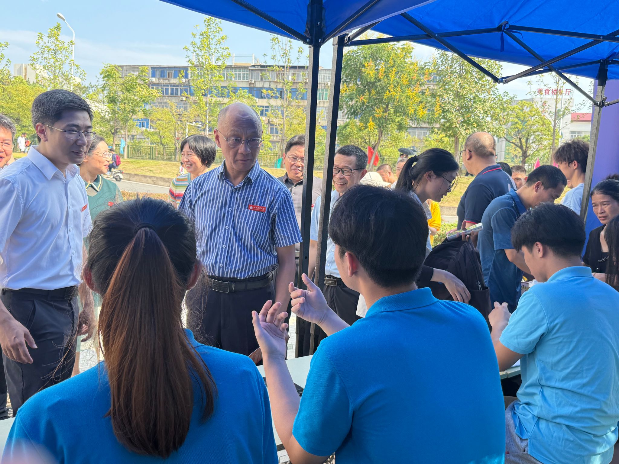 迎新现场,从校门口的引导接待、报到点的资料审核,到宿舍区的行李搬运、生活指引,志愿者、学生干部和班助们全程陪伴,为新生提供“一站式”贴心服务。他们耐心解答新生和家长的疑问,主动帮助他们解决遇到的问题,让新生和家长在踏入校园的第一时间就感受到了学院的温暖与关怀。校党委书记黄路生院士亲临学院迎新现场,询问报到流程,与迎新志愿者亲切交谈。