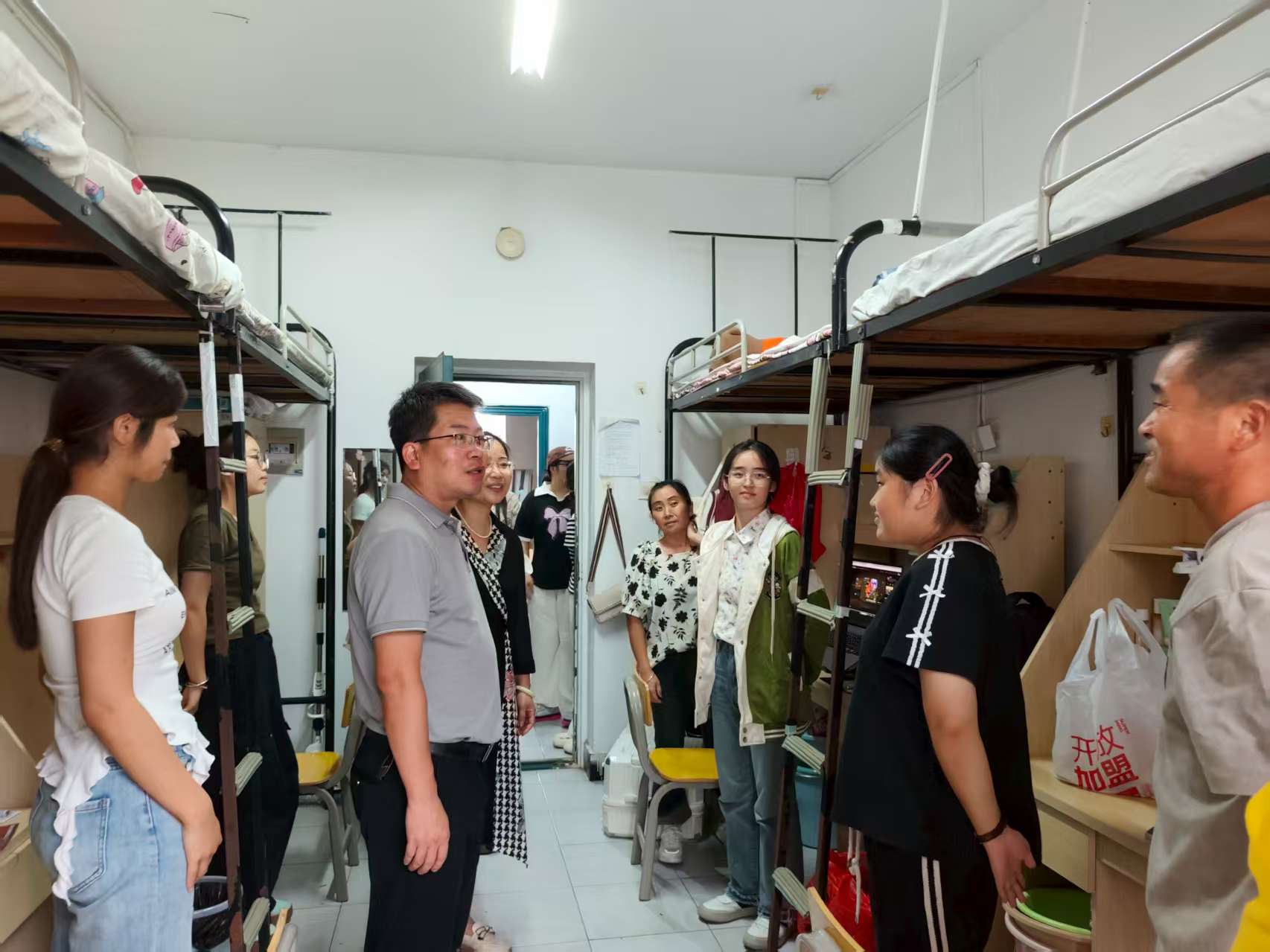 新生报到结束后,学院领导、新生班主任、辅导员和新生班主任助理来到新生寝室,暖心询问新同学新宿舍住的是否习惯、吃的是否习惯。期间很多学生家长表示一进校门就感受到这个学校团结、友善的氛围,表示自己的孩子在农大上学他们很放心。学院党委书记刘庆言为同学们讲解学院的发展脉络,并且以身边的优秀学生案例给同学们展示专业的价值,勉励同学们要努力奋斗,做一个勇担当、善作为,以坚定信念为帆,以扎实学识为桨的新青年。