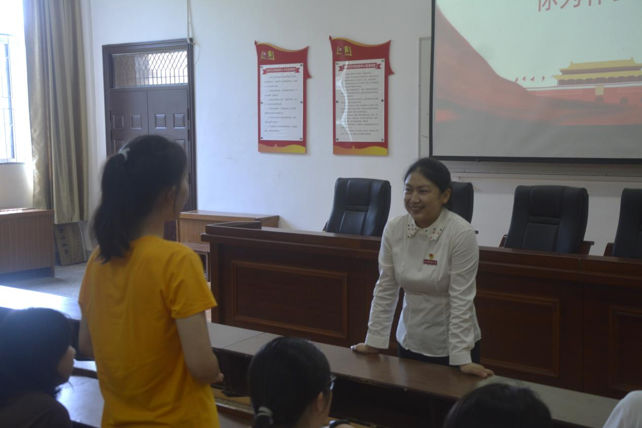 叶健从“共和国勋章”获得者张富清和“时代楷模”王继才两位党员的感人事迹引入,从“入党的标准及条件”、“入党积极分子的培养和考察”和“预备党员的教育、考察和转正”等五个方面对大学生入党流程进行了详细讲解,为学生解答了“为什么要入党?”“怎样才能入党?”“大学生入党有哪些流程”“如何成为一名优秀党员?”。最后,叶健勉励新生要坚定理想信念,树立远大志向,敢于挑战自我,把自身所学同祖国发展需求密切结合,让美好青春在祖国大地上绽放出绚丽之花。