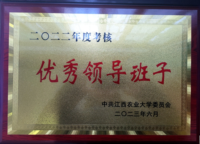 2024年1月23日,校党委组织部下发了江西农业大学2022年度优秀领导班子奖牌,beat365领导班子成功获评“2022年度优秀领导班子”荣誉。