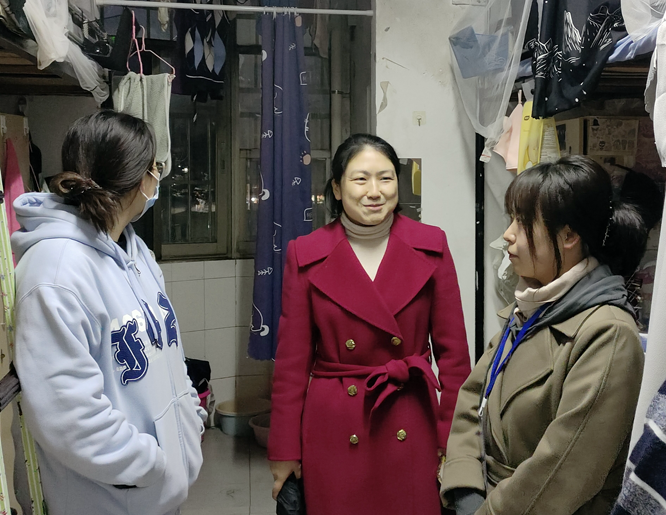随后,叶健来到学生宿舍,提醒同学们强化消防安全和交通安全意识、谨防电信网络诈骗等。同时,叮嘱学生在降温期间注意添衣保暖,加强身体素质锻炼,提升自身的综合素养。