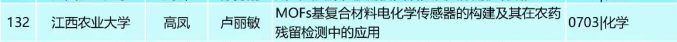 近日,江西省人民政府学位委员会办公室发布了《关于2023年江西省优秀博士硕士学位论文评审结果的公示》,beat3652020级化学专业硕士研究生高凤(导师:卢丽敏)的学位论文《MOFs基复合材料电化学传感器的构建及其在农药残留检测中的应用》获评2023年江西省优秀硕士学位论文。
