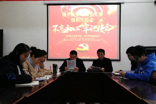 根据“不忘初心、牢记使命”主题教育及上级有关要求,12月5日至10日,学院党委下属研究生、本科生及化学系支部先后召开了专题组织生活会,学院领导班子党员干部分别参加了所在支部的专题组织生活会。
