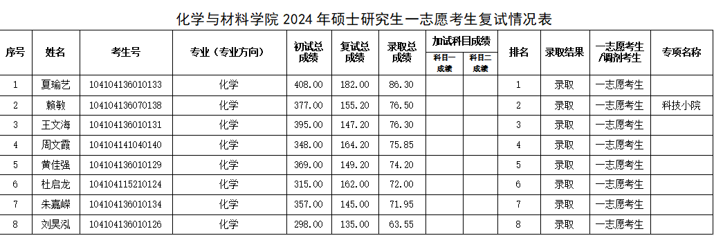 附件:化学与材料学院2024年硕士研究生一志愿考生复试情况表
