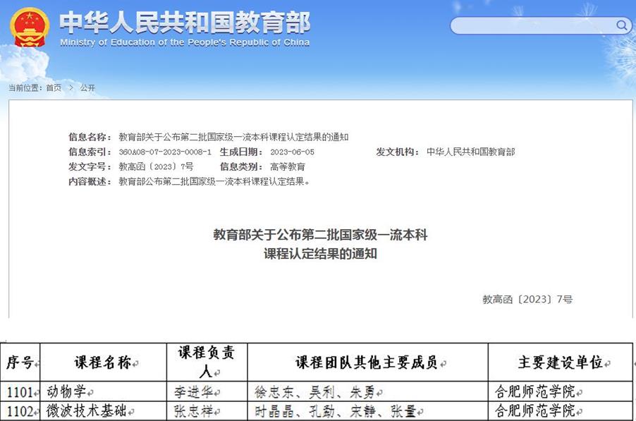 “动物学”课程获批第二批国家级一流本科课程